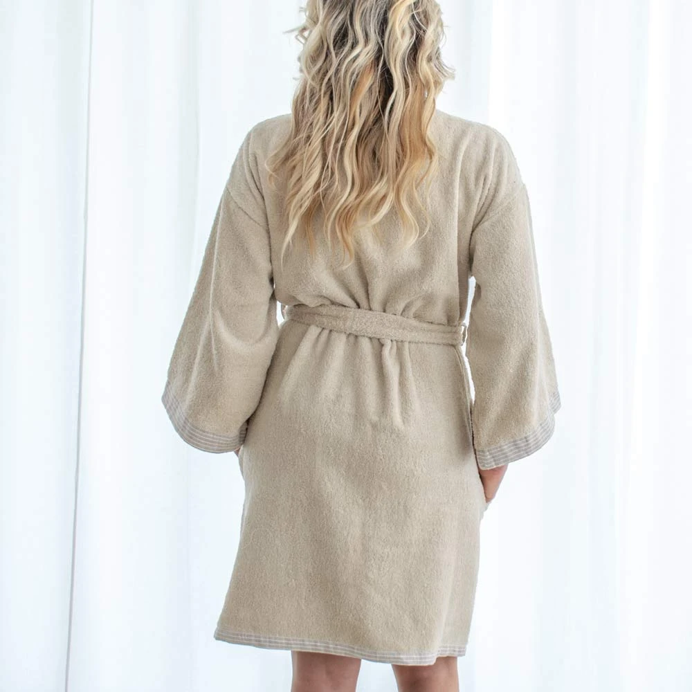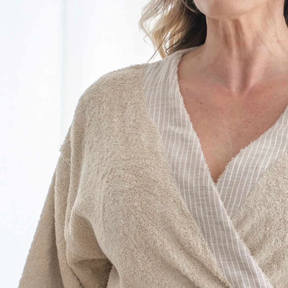 Bademantel Damen Baumwolle Frottee - Faden-gefärbtem Leinen Naturalis 550gr