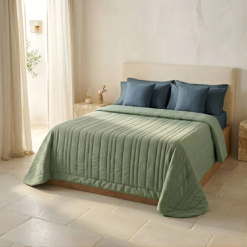 Frühling Steppdecke - Nach Maß - Reines Leinen Stone Washed