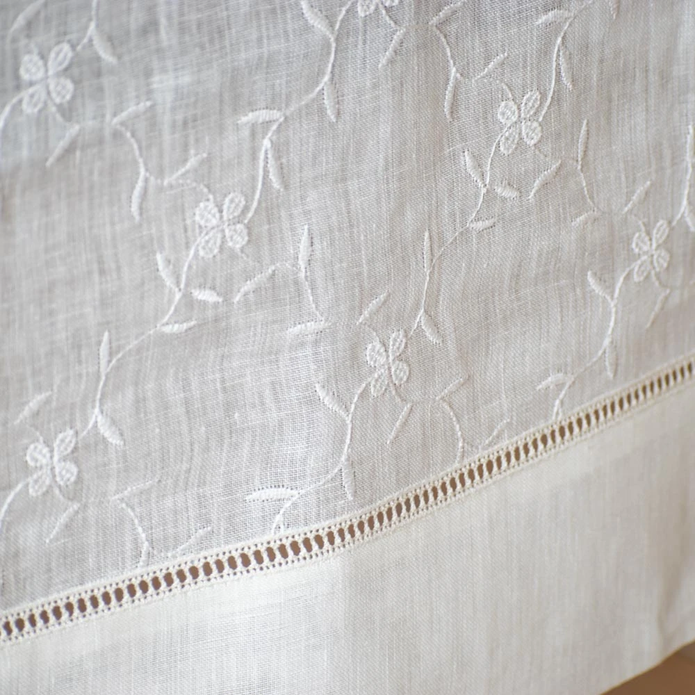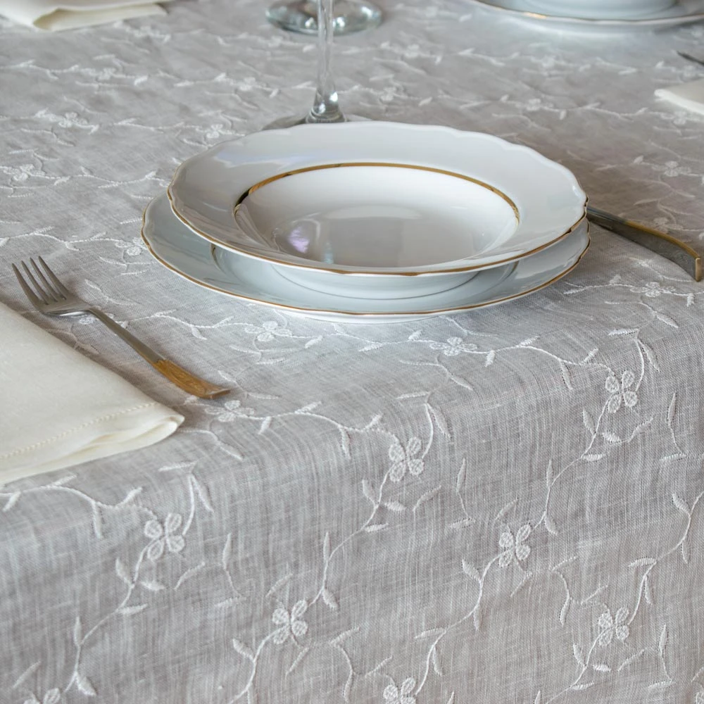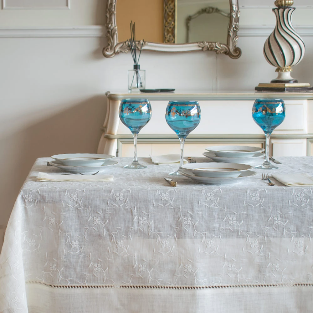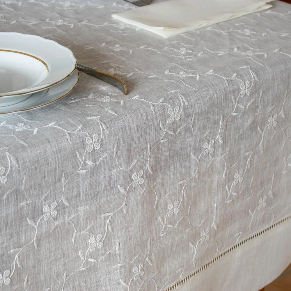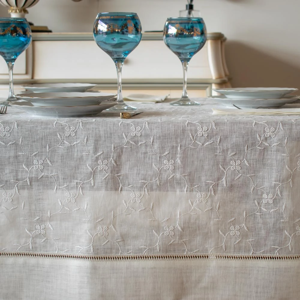 Rechteckige Tischdecke - Nach Maß - Gaze-Leinen Safie mit Stickerei und Gigliuccio-Einsatz – Maßanfertigung